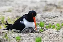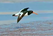 蛎鹬是鸻形目蛎鹬科蛎鹬属。蛎鹬的成鸟夏羽头、颈、胸和上体大部分为乌亮的黑色,腰到尾上覆羽白色,尾羽基部白色,端部黑色;翼上黑色,具有白横斑;下体胸部以下白色,翼下白色带黑缘;虹膜红色,啄和眼圈橘色,…全部>>