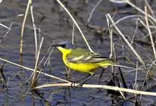 黄头鹡鸰:是雀形目鹡鸰科的鸟类。体长约18厘米,体型较纤细,喙较细长,先端具缺刻;翅尖长,内侧飞羽极长,几与翅尖平齐;尾细长呈圆尾状,中央尾羽较外侧尾羽为长。多活动于水边,停息时尾上下摆动,…全部>>