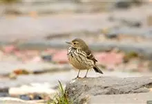 黄腹鹨:是雀形目鹡鸰科的鸟类,属小型鸣禽,体长约15厘米。似树鹨但上体褐色浓重,上喙较细长,先端具缺刻;翅尖长,内侧飞羽极长,几与翅尖平齐;尾细长,外侧尾羽具白,野外停栖时,常做有规律的上、下摆动,…全部>>