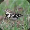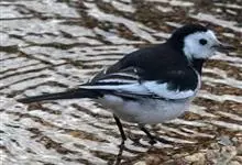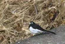日本鹡鸰:体长约20厘米。上体多黑色,额、颏及眉纹白,下体白,两翼黑而具白色横斑及羽缘,尾黑而边缘白色。虹膜深褐色;嘴黑色;脚黑色。飞行时发出嘁喳声,具复杂而独特的鸣声。喜农田、稻田和溪流。…全部>>