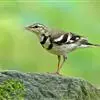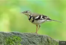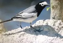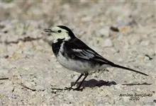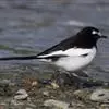 日本鹡鸰:体长约20厘米。上体多黑色,额、颏及眉纹白,下体白,两翼黑而具白色横斑及羽缘,尾黑而边缘白色。虹膜深褐色;嘴黑色;脚黑色。飞行时发出嘁喳声,具复杂而独特的鸣声。喜农田、稻田和溪流。…全部>>