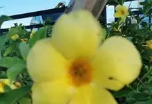 大花软枝黄蝉是软枝黄蝉的一个变种,夹竹桃科黄蝉属植物。藤状灌木,长达4米,枝条软弯垂,具白色乳汁。叶纸质,椭圆形、卵圆形或倒卵形,花序着花4-5朵,花冠比原变种大形,橙黄色,花冠喉部具5个发亮的斑点…全部>>