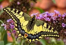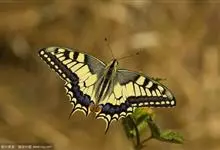 金凤蝶,是鳞翅目凤蝶科凤蝶属动物。金凤蝶为中型凤蝶,翅展70-84毫米,翅背面底色黑褐色,翅脉黑色,翅室具黄斑;前翅背面基部呈暗黄色,亚外缘为黑色,内具一列小黄斑;后翅背面亚外缘区具黑宽边,…全部>>