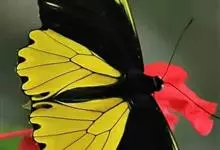 金裳凤蝶是凤蝶科、裳凤蝶属的动物。金裳凤蝶身体呈黑色,头、颈和胸侧有红毛,腹部有黑黄两色相间条纹,雄蝶前翅黑色,具黑天鹅绒光泽,各脉两侧灰白色,后翅金黄色,各室外缘有等腰三角形黑斑1枚,斑内侧有晕,…全部>>