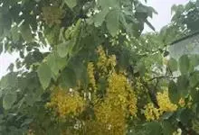 腊肠树:是豆科腊肠树属植物。落叶乔木,高可达15米;枝细长;树皮灰色,老时粗糙,暗褐色。叶长30-40厘米,小叶对生,薄革质,阔卵形,卵形或长圆形,边全缘,幼嫩时两面被微柔毛,老时无毛;叶脉纤细,…全部>>