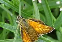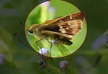 姜弄蝶 Udaspes folus ,又叫银斑姜蝶。幼虫吐丝粘叶成苞,隐藏其中取食,受害叶呈缺刻或在1/3处断落,…全部>>