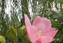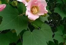 木芙蓉,锦葵科木槿属落叶灌木或小乔木。小枝上有细绒毛;叶片为卵状心形,托叶为披针形,常早落;花单生,花萼为钟形,花冠初为白色或淡红色,后逐渐变为深红色;果实为扁球形,有淡黄色的毛附着。花期8到10月。…全部>>
