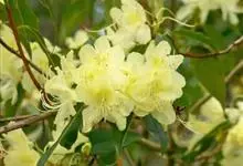黄杯杜鹃:灌木,高约3米;幼枝嫩绿色,平滑无毛,老枝灰白色,树皮有时层状剥落。叶多密生于枝端,革质,长圆状椭圆形或卵状椭圆形,上面深绿色,下面淡绿色或灰绿色。总状伞形花序,有花5-14朵;花冠杯状,…全部>>