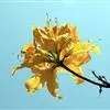 黄花杜鹃:灌木,高1-3米。幼枝细长,疏生鳞片。叶散生,叶片纸质,披针形、长圆状披针形或卵状披针形。花1-3朵顶生或生枝顶叶腋;宿存的花芽鳞覆瓦状排列;花萼不发育,波状5裂或环状;花冠宽漏斗状,略呈…全部>>