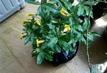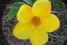 大花软枝黄蝉是软枝黄蝉的一个变种,夹竹桃科黄蝉属植物。藤状灌木,长达4米,枝条软弯垂,具白色乳汁。叶纸质,椭圆形、卵圆形或倒卵形,花序着花4-5朵,花冠比原变种大形,橙黄色,花冠喉部具5个发亮的斑点…全部>>
