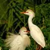 牛背鹭:体较肥胖,喙和颈较短粗。夏羽大都白色;头和颈橙黄色,前颈基部和背中央具羽枝分散成发状的橙黄色长形饰羽;前颈饰羽长达胸部,背部饰羽向后长达尾部,尾和其余体羽白色。冬羽通体全白色,个别头顶缀有黄色,…全部>>