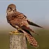 红隼:是隼科、隼属的小型猛禽之一。体重173-335克,体长305-360毫米。翅狭长而尖,尾亦较长,外形和共同爪隼非常相似。雄鸟头蓝灰色,背和翅上覆羽砖红色,具三角形黑斑;腰、尾上覆羽和尾羽蓝灰色,…全部>>