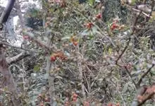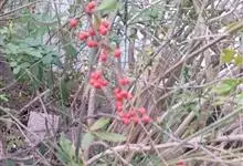 火棘 H. L. Li)是蔷薇科火棘属常绿灌木,老枝呈暗褐色;叶片呈倒卵形,边缘有钝锯齿,齿尖向内弯,两面皆无毛;叶柄短,无毛或嫩时有柔毛;花序是复伞房状,花瓣呈白色近圆形;果球近圆形,…全部>>