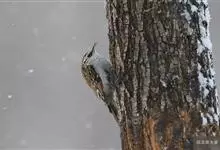 旋木雀是旋木雀科旋木雀属的一种动物。小型鸟类,体长12~15厘米,平均重10克。嘴长而下曲,上体棕褐色具白色纵纹,腰和尾上覆羽红棕色,尾黑褐色,外翈羽缘淡棕色,翅黑褐色,翅上覆羽羽端棕白色,…全部>>
