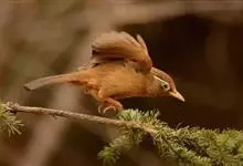 画眉,是雀形目噪鹛属一种鸣禽,别名为文武鸟、金画眉。成年画眉体长为21~25cm,体重为49~75g,眼周具一圈白色羽毛,并向眼后延伸形成一条显著的白色眉纹;上体覆羽呈卡其色,飞羽为暗褐色,…全部>>