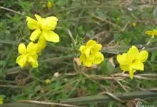 迎春花,木犀科素馨属的多年生木本植物,小枝细长直立或者呈拱形下垂;叶片呈卵形或椭圆形;花单生于叶腋处,苞片呈披针形或椭圆形,花冠为金黄色,花瓣通常为倒卵形或椭圆形;花期在6月。…全部>>