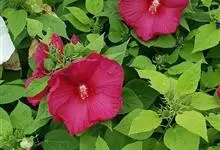 芙蓉葵是锦葵科木槿属植物,又名草芙蓉、大花秋葵,原产于北美。落叶灌木状。叶大、广卵形,叶柄、叶背密生灰色星状毛。花大,单生于叶腋,有白、粉、红、紫等色。喜阳、略耐阴,宜温暖湿润气候,忌干旱,耐水湿,…全部>>