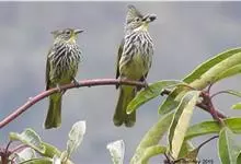 纵纹绿鹎,是鹎科鹎属的一种动物,是体型中等大小鸟类,体长20-24厘米。头绿褐色具明显的冠羽,其上具细的白色纵纹。上体橄榄绿色具细的白色纵纹。眼圈浅黄色。喉和尾和覆羽黄色,其余下体暗灰黑色具黄白色纵纹。…全部>>