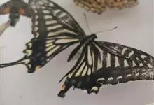 柑橘凤蝶是鳞翅目凤蝶科凤蝶属昆虫,又称柑橘黄凤蝶、花椒凤蝶、燕凤蝶。中型凤蝶。翅底色黑褐色,翅脉黑色,各翅室内具长短不一的黄白色斑;前翅中室具4条近乎平行的黄色线纹,后翅臀区具一枚橘红色的圆斑,…全部>>