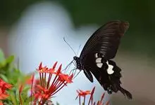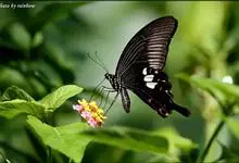 玉斑凤蝶Papilio helenus 别名白纹凤蝶,是凤蝶科凤蝶属美凤蝶亚属大型种类。雌雄同型;体翅皆黑色,后翅正面中室外有3个并列的白色斑,亚外缘有1列模糊的新月形红色斑,…全部>>
