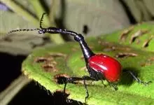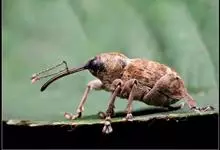 甘薯小象甲是鞘翅目蚁象科甘薯小象甲属昆虫,又称甘薯蚁象、甘薯象、番薯臭虫。成虫除触角、前胸、中胸、足为赤褐色外,鞘翅、腹部为暗蓝色,有金属光泽;体型细长,…全部>>
