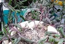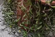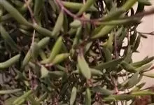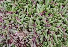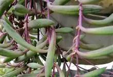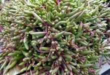 紫玄月是菊科厚敦菊属多年生肉质草本植物。蔓长30-60厘米;茎紫色;叶对生或互生茎上肉质,叶片细圆柱形,中间粗两端细稍弯曲;花序着生于叶腋,头状花序,舌状花黄色,管状花黄色;花期全年。…全部>>