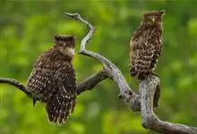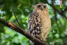 褐渔鸮,是鸱鸮科、渔鸮属的鸟类。褐渔鸮为大型鸮类,体长51-55厘米,外形和毛脚鱼鸮相似,但较棕褐色,上体有粗著黑色斑纹,下体黄白色或浅暗黄色,有粗著的黑色条纹和细的波状横斑,喉有大的白色块斑,…全部>>