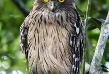 褐渔鸮,是鸱鸮科、渔鸮属的鸟类。褐渔鸮为大型鸮类,体长51-55厘米,外形和毛脚鱼鸮相似,但较棕褐色,上体有粗著黑色斑纹,下体黄白色或浅暗黄色,有粗著的黑色条纹和细的波状横斑,喉有大的白色块斑,…全部>>