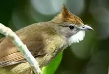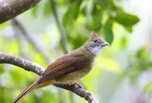 白喉冠鹎:体长20-25厘米。头顶红褐色,有长而细的羽冠、红褐色,头侧灰色。上体橄榄绿黄色,飞羽暗褐色,外翈茶黄色,尾下覆羽皮黄色。…全部>>
