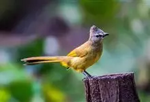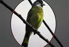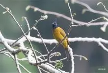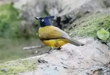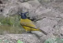 黑冠黄鹎:体长18-21厘米,是一种中等体型偏黄色鹎。整个头、颈、颏、喉黑色,头顶有显著直立的羽冠,黑色,上体褐橄榄黄绿色,下体橄榄黄色。虹膜偏红;嘴及脚黑色。…全部>>