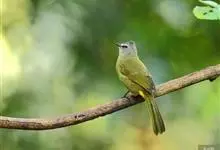 黄绿鹎,小型鸟类,体长19-22厘米。额至头顶暗褐具灰色羽缘,眼先黑色,其上面有一粗著的白纹从鼻后至眼,在黑色的头部极为醒目。上体橄榄绿褐色。颏、喉淡灰色或灰白色,胸灰褐色具橄榄黄色羽缘,…全部>>