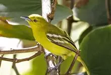 黑翅雀鹎:体重14-19克,体长11.5-16厘米。是树栖性绿色小鸟,外形与叶鹎相似,下体黄色。鸟喙直,翼长而尖,总体羽毛是绿色和黄色相结合,翼上具两道明显近白色横纹,翼近黑而羽缘白。…全部>>