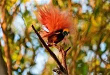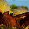 大极乐鸟是极乐鸟属中最大的鸟种。成年雄鸟体长可达到43厘米,雌性可达35厘米。雄鸟的额、颊、喉等墨绿色;头、颈黄色;上体暗赤栗色;腹部葡萄红色,胁部有长饰羽,其基部橙黄,中部黄色,…全部>>