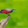红翅旋壁雀:体重15-23克,体长120-178毫米。是一种体型略小的鸟类。尾短而嘴长,翼具醒目的绯红色斑纹。飞羽黑色,外侧尾羽羽端白色显著,初级飞羽两排白色点斑飞行时成带状。繁殖期雄鸟脸及喉黑色,…全部>>