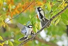 大山雀是山雀科、山雀属的中小型鸟类,体长13-15厘米,翼展23-26厘米,体重16-21克。是黑、灰及白色山雀。头及喉辉黑色,与脸侧白斑及颈背块斑成强对比;翼上具一道醒目的白色条纹,…全部>>
