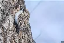 旋木雀是旋木雀科旋木雀属的一种动物。小型鸟类,体长12~15厘米,平均重10克。嘴长而下曲,上体棕褐色具白色纵纹,腰和尾上覆羽红棕色,尾黑褐色,外翈羽缘淡棕色,翅黑褐色,翅上覆羽羽端棕白色,…全部>>