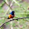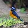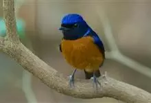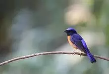 棕腹大仙鹟:体重24-28克,体长15-17厘米,是一种小型的色彩亮丽的鹟。雄鸟上体深蓝,下体棕色,脸黑,额、颈侧小块斑、翼角及腰部亮丽闪辉蓝色。与棕腹仙鹟易混淆,区别在色彩较暗。雌鸟灰褐,…全部>>