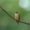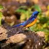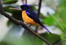 棕腹大仙鹟:体重24-28克,体长15-17厘米,是一种小型的色彩亮丽的鹟。雄鸟上体深蓝,下体棕色,脸黑,额、颈侧小块斑、翼角及腰部亮丽闪辉蓝色。与棕腹仙鹟易混淆,区别在色彩较暗。雌鸟灰褐,…全部>>