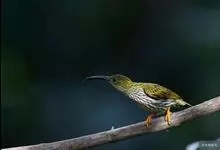 纹背捕蛛鸟:为太阳鸟科捕蛛鸟属的鸟类。是太阳鸟科中体型较大的一种,体重25-45克,体长160-210毫米。嘴粗长而尖且向下弯曲。上体橄榄黄色具黑色中央斑纹。下体淡黄白色满布黑色纵纹,尾具黑色次端斑。…全部>>