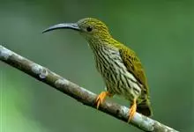 纹背捕蛛鸟:为太阳鸟科捕蛛鸟属的鸟类。是太阳鸟科中体型较大的一种,体重25-45克,体长160-210毫米。嘴粗长而尖且向下弯曲。上体橄榄黄色具黑色中央斑纹。下体淡黄白色满布黑色纵纹,尾具黑色次端斑。…全部>>