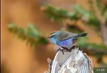 凤头雀莺:小型鸟类。体长9-10厘米,雄鸟呈毛茸茸的紫色和绛紫色,顶冠淡紫灰色,额及凤头白色,尾全蓝。雌鸟喉及上胸白,至臀部渐变成淡紫色,耳羽灰,…全部>>