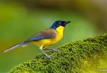 白腹凤鹛是绿鹃科、绿凤鹛属的小型鸟类,体长10-12厘米。上体从头到尾黄绿色,有短的羽冠,头顶微具黑色羽轴纹;眼先、眼周,耳羽和下体灰白色,尾下覆羽黄色。虹膜褐色或红褐色,上嘴浅褐色或肉褐色,…全部>>