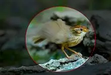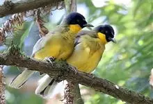 黄喉噪鹛体型略小,顶冠蓝灰色,特征为具黑色的眼罩和鲜黄色的喉。上体褐色,尾端黑色而具白色边缘,腹部及尾下覆羽皮黄色而渐变成白色。黄喉噪鹛隐匿于亚热带常绿林和浓密灌丛,于地面杂物中取食,喜食昆虫,…全部>>