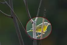 白腹凤鹛是绿鹃科、绿凤鹛属的小型鸟类,体长10-12厘米。上体从头到尾黄绿色,有短的羽冠,头顶微具黑色羽轴纹;眼先、眼周,耳羽和下体灰白色,尾下覆羽黄色。虹膜褐色或红褐色,上嘴浅褐色或肉褐色,…全部>>