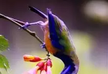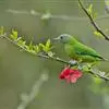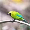 蓝翅叶鹎:小型鸟类,体长15-18厘米。雄鸟通体草绿色,尾蓝绿色,肩和翅亮蓝 色,胸缀有黄色,颏、喉黑色。雌鸟颏,喉蓝绿色。栖息在海拔1500米以下的常绿阔叶林、次生林和林缘疏林灌丛中。…全部>>