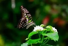 青带凤蝶Graphium sarpedon ,又名青凤蝶,是最普遍的中型凤蝶,飞行速度很快。青带凤蝶的翅膀中央有许多浅蓝色的斑点,很整齐地排列成一条直线。这些斑点由上而下逐渐变大,就像一条青色的带子。全部>>