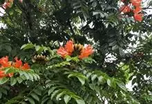 火焰木,又名苞萼木、喷泉树,为紫葳科常绿大乔木,株高10—20米,叶为奇数羽状复叶,对生,较大,斜椭圆形,全缘,纸质,叶面深绿色。 全部>>