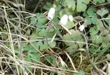 天葵 Makino)是毛茛科天葵属多年生小草本植物,块根长达2厘米,外皮棕黑色。茎高可达32厘米,基生叶为掌状三出复叶;叶片轮廓卵圆形至肾形,小叶扇状菱形或倒卵状菱形,两面均无毛;叶柄长可达12厘米,…全部>>