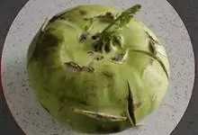 擘蓝是十字花科,芸薹属二年生草本植物,高可达60厘米,茎短,无毛,离地面处膨大实心长圆球体或扁球体,绿色,其上生叶。叶片略厚,边缘有不规则裂齿;叶柄常有少数小裂片;总状花序顶生;种子有棱角。4月开花,…全部>>