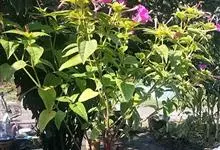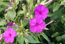 即紫茉莉,英文名:Four-o'clock,Marvel of Peru,为紫茉莉科、紫茉莉属多年生草本植物,一年生栽培。株高50~80cm。根粗壮,茎多分枝而散生。叶对生,卵形或心脏形。花数朵簇生…全部>>